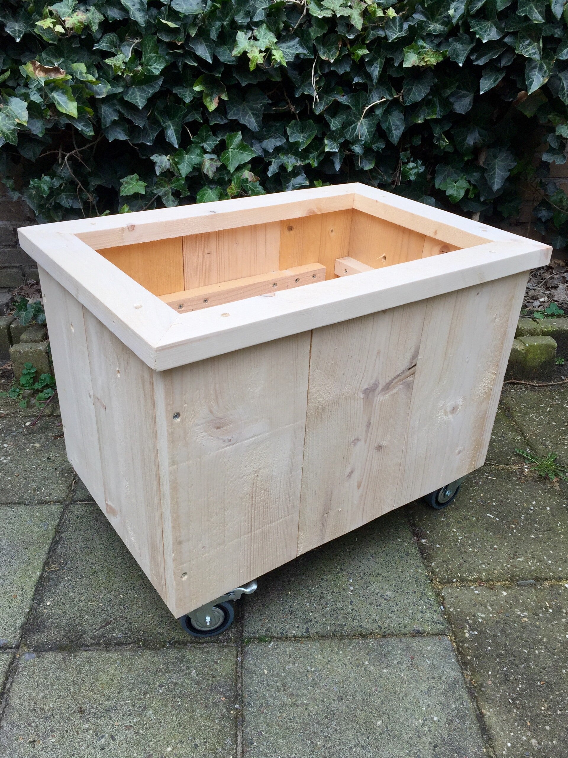 Deze plantenbakken passen in iedere tuin of woning. Of er nu kleine plantjes of boompjes in komen te staan. De bodem is verstelbaar, hierdoor is het niet nodig de hele bak te vullen met potgrond als er kleine plantjes in komen.Voor buiten zullen ze behandeld moeten worden, om ze weerbestendig te maken. Met bijvoorbeeld white of greywash. De bakken staan op wielen waarvan er twee geremd zijn. Hierdoor zal de bak niet wegrollen.